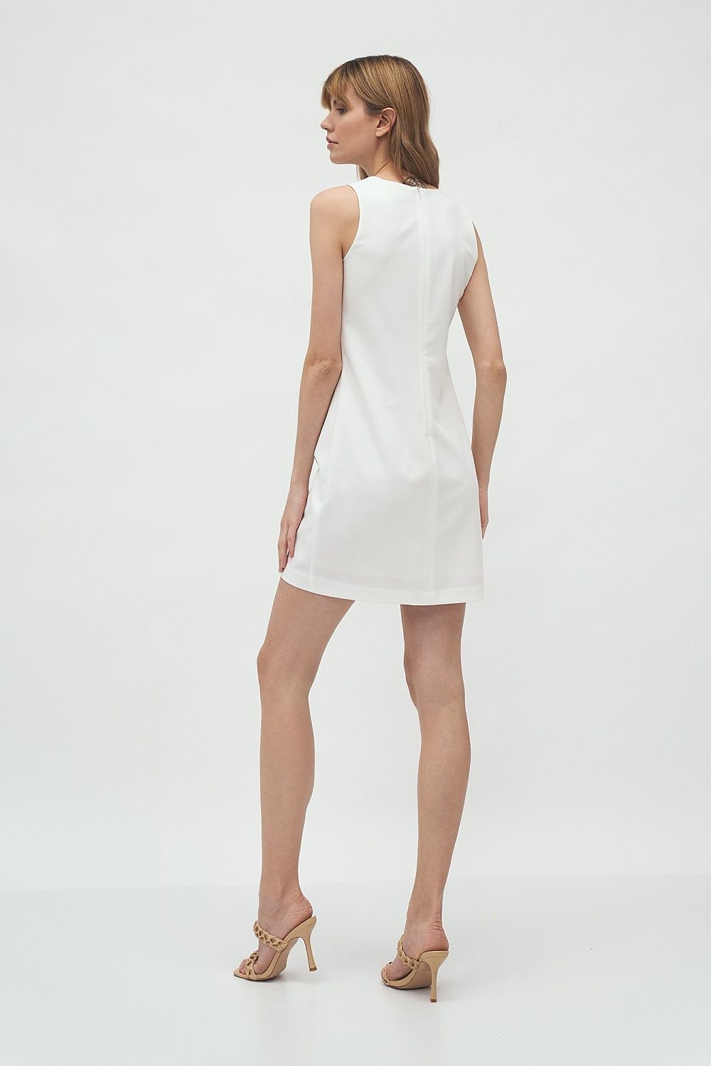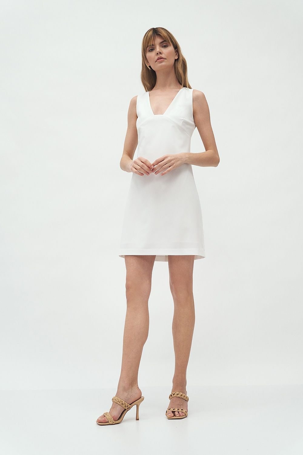 Minimalism fits perfectly into the soft office style. This model is an ideal representative of this style. An incredibly feminine dress whose neckline allows to present rich jewelry. Paired with a high stiletto heel and a beautiful clutch bag makes a perfect outfit for a big day out.